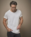 100% Ringspun combed cotton. Heather Grey: 85% Cotton, 15% Viscose. Fashion loose fit. Shoulder-to-shoulder neck tape. Double pre-shrunk. Long-fibre cotton. Enzyme-washed. Silicone treatment. Large neck opening with slim neck rib.