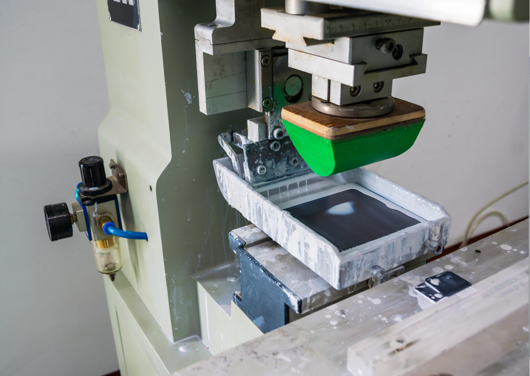 Screen printing is a printing technique that uses a woven mesh to support an ink-blocking stencil. The attached stencil forms open areas of mesh that transfer ink or other printable materials, which can be pressed through the mesh as a sharp-edged image onto a substrate.